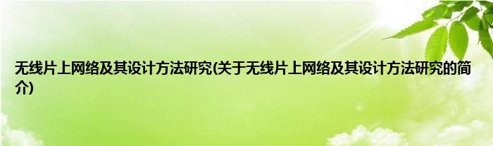 本文关于无线片上网络及其设计方法研究的简介就讲解完毕,希望对大家有所帮助。