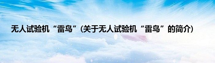 无人试验机“雷鸟”(关于无人试验机“雷鸟”的简介)