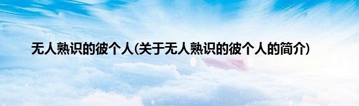 本文关于无人熟识的彼个人的简介就讲解完毕,希望对大家有所帮助。