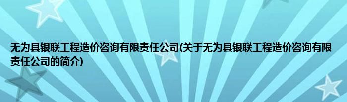本文关于无为县银联工程造价咨询有限责任公司的简介就讲解完毕,希望对大家有所帮助。