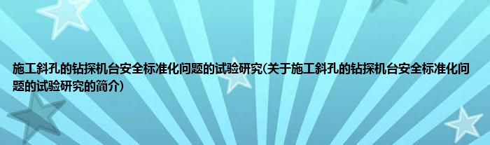 施工斜孔的钻探机台安全标准化问题的试验研究(关于施工斜孔的钻探机台安全标准化问题的试验研究的简介)
