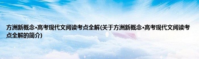 本文关于方洲新概念·高考现代文阅读考点全解的简介就讲解完毕,希望对大家有所帮助。