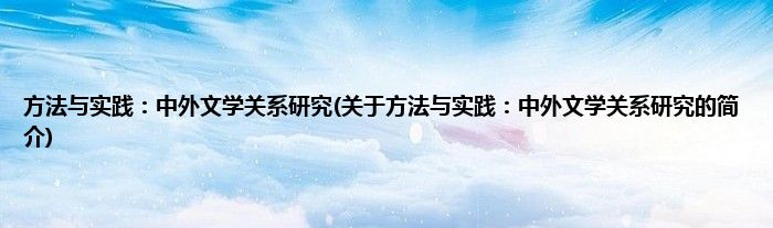 本文关于方法与实践:中外文学关系研究的简介就讲解完毕,希望对大家有所帮助。