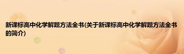 本文关于新课标高中化学解题方法全书的简介就讲解完毕,希望对大家有所帮助。