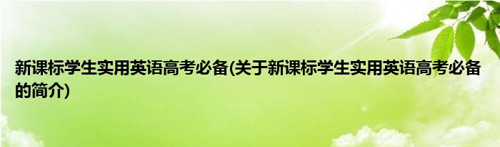 大家好,新课标学生实用英语高考必备,关于新课标学生实用英语高考必备的简介很多人还不知道,现在让我们一起来看看吧!