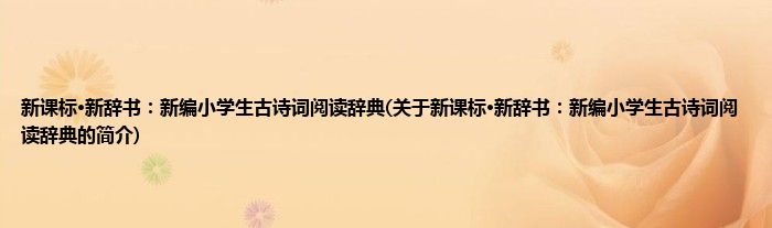 本文关于新课标·新辞书:新编小学生古诗词阅读辞典的简介就讲解完毕,希望对大家有所帮助。