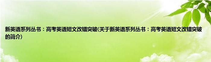 本文关于新英语系列丛书:高考英语短文改错突破的简介就讲解完毕,希望对大家有所帮助。