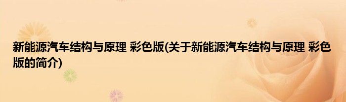 新能源汽车结构与原理彩色版(关于新能源汽车结构与原理彩色版的简介)