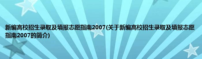新编高校招生录取及填报志愿指南2007(关于新编高校招生录取及填报志愿指南200...