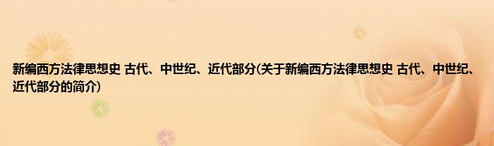 本文关于新编西方法律思想史 古代、中世纪、近代部分的简介就讲解完毕,希望对大家有所帮助。