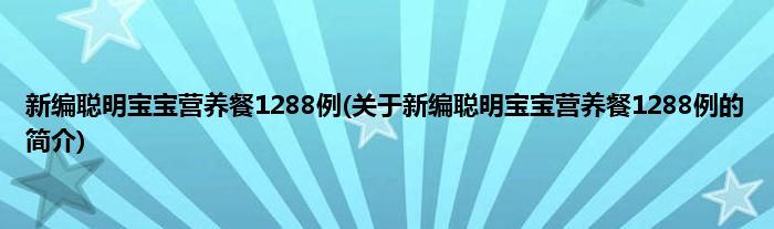 本文关于新编聪明宝宝营养餐1288例的简介就讲解完毕,希望对大家有所帮助。
