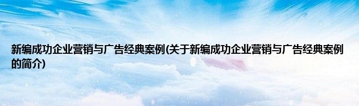 本文关于新编成功企业营销与广告经典案例的简介就讲解完毕,希望对大家有所帮助。