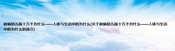 新编幼儿版十万个为什么——人体与生活中的为什么(关于新编幼儿版十万个为什么——人体与生活中的为什么的简介)