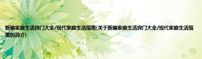 本文关于新编家庭生活窍门大全/现代家庭生活指南的简介就讲解完毕,希望对大家有所帮助。