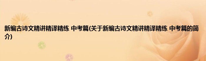 本文关于新编古诗文精讲精译精练 中考篇的简介就讲解完毕,希望对大家有所帮助。
