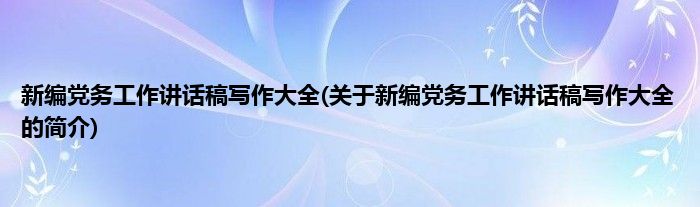 1、 《新编党务工作讲话稿写作大全》是2007年蓝天出版社出版的图书。