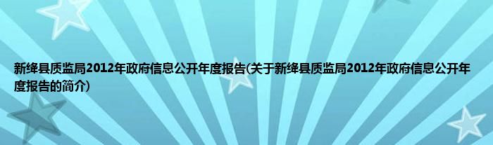 本文关于新绛县质监局2012年政府信息公开年度报告的简介就讲解完毕,希望对大家有所帮助。