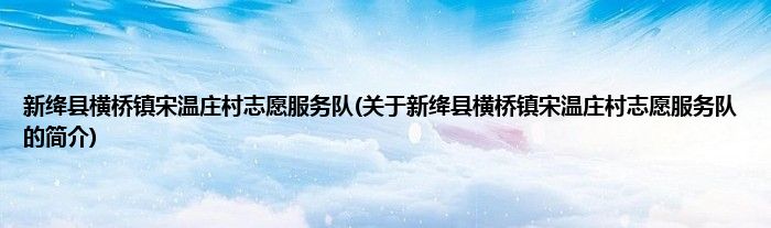 1、 新绛县横桥镇宋温庄村志愿服务队是由新绛县志愿服务联合会领导下的志愿团体。