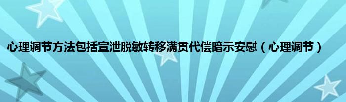 大家好,精选小编来为大家解答以上问题。心理调节方法包括宣泄脱敏转移满贯代偿暗示安慰,心理调节很多人还不知道,现在让我们一起来看看吧!
