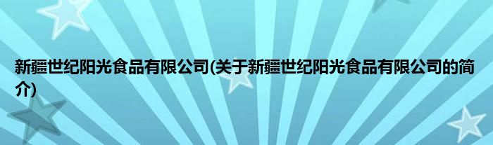 大家好,新疆世纪阳光食品有限公司,关于新疆世纪阳光食品有限公司的简介很多人还不知道,现在让我们一起来看看吧!