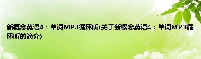 本文关于新概念英语4:单词MP3循环听的简介就讲解完毕,希望对大家有所帮助。