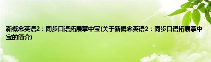 本文关于新概念英语2:同步口语拓展掌中宝的简介就讲解完毕,希望对大家有所帮助。
