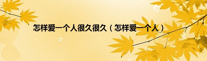 大家好,精选小编来为大家解答以上问题。怎样爱一个人很久很久,怎样爱一个人很多人还不知道,现在让我们一起来看看吧!