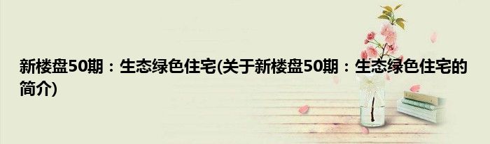 大家好,新楼盘50期:生态绿色住宅,关于新楼盘50期:生态绿色住宅的简介很多人还不知道,现在让我们一起来看看吧!