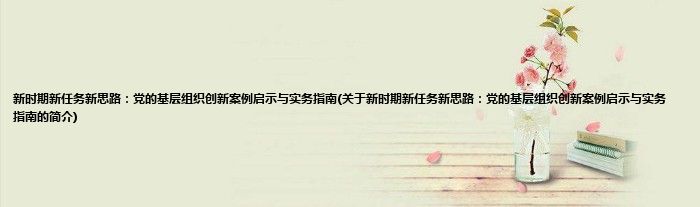 本文关于新时期新任务新思路:党的基层组织创新案例启示与实务指南的简介就讲解完毕,希望对大家有所帮助。