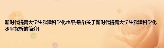 本文关于新时代提高大学生党建科学化水平探析的简介就讲解完毕,希望对大家有所帮助。
