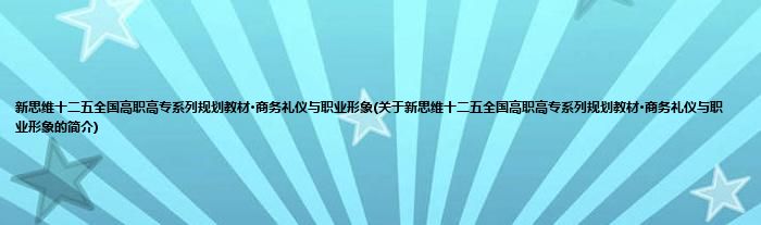 本文关于新思维十二五全国高职高专系列规划教材·商务礼仪与职业形象的简介就讲解完毕,希望对大家有所帮助。