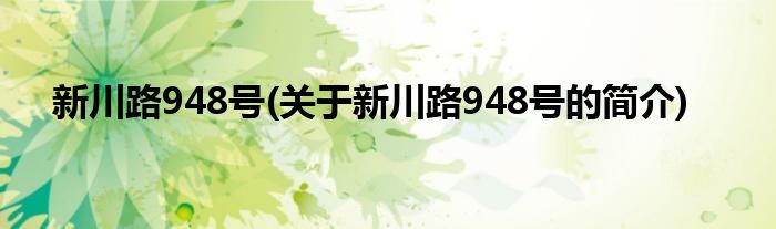 本文关于新川路948号的简介就讲解完毕,希望对大家有所帮助。
