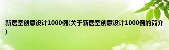 本文关于新居室创意设计1000例的简介就讲解完毕,希望对大家有所帮助。