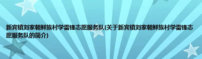 新宾镇刘家朝鲜族村学雷锋志愿服务队(关于新宾镇刘家朝鲜族村学雷锋志愿服务队的简介...