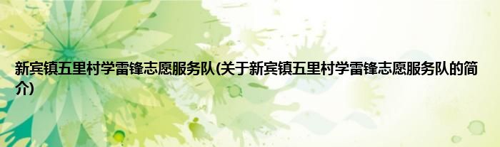 新宾镇五里村学雷锋志愿服务队(关于新宾镇五里村学雷锋志愿服务队的简介)