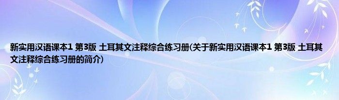 本文关于新实用汉语课本1 第3版 土耳其文注释综合练习册的简介就讲解完毕,希望对大家有所帮助。