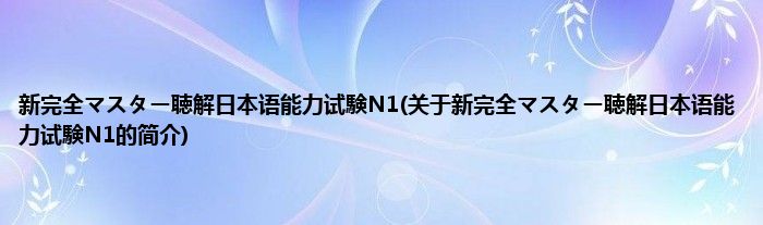 本文关于新完全マスター聴解日本语能力试験N1的简介就讲解完毕,希望对大家有所帮助。