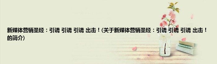 本文关于新媒体营销圣经:引诱,引诱,引诱,出击!的简介就讲解完毕,希望对大家有所帮助。