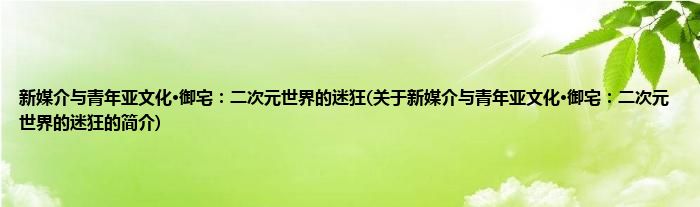 本文关于新媒介与青年亚文化·御宅:二次元世界的迷狂的简介就讲解完毕,希望对大家有所帮助。