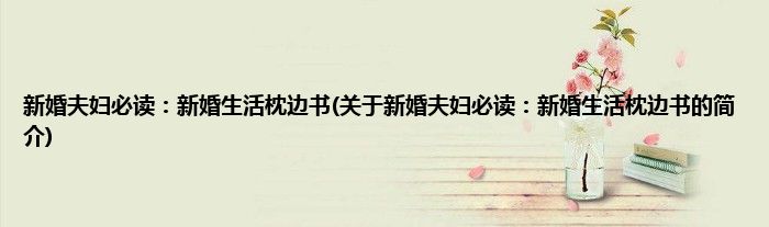 本文关于新婚夫妇必读:新婚生活枕边书的简介就讲解完毕,希望对大家有所帮助。