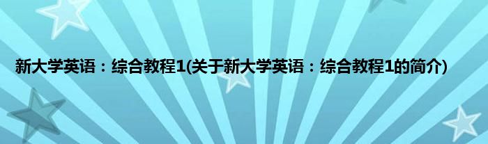 本文关于新大学英语:综合教程1的简介就讲解完毕,希望对大家有所帮助。