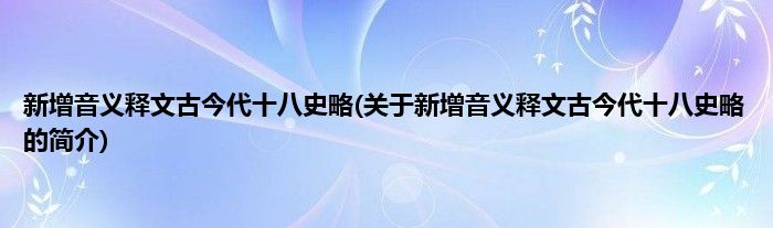 本文关于新增音义释文古今代十八史略的简介就讲解完毕,希望对大家有所帮助。