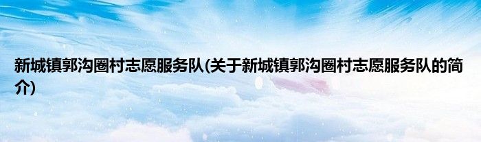 本文关于新城镇郭沟圈村志愿服务队的简介就讲解完毕,希望对大家有所帮助。