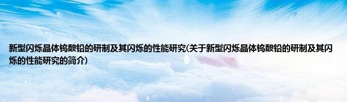 本文关于新型闪烁晶体钨酸铅的研制及其闪烁的性能研究的简介就讲解完毕,希望对大家有所帮助。