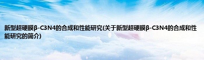 大家好,新型超硬膜β-C3N4的合成和性能研究,关于新型超硬膜β-C3N4的合成和性能研究的简介很多人还不知道,现在让我们一起来看看吧!