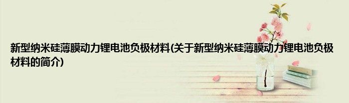 本文关于新型纳米硅薄膜动力锂电池负极材料的简介就讲解完毕,希望对大家有所帮助。
