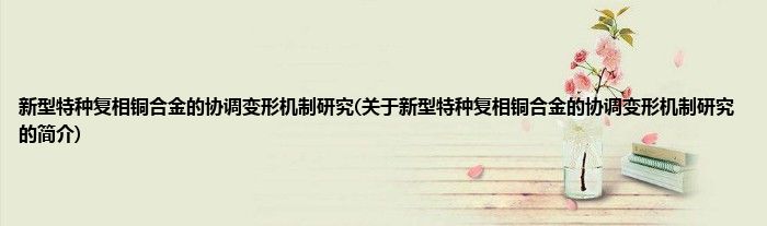 本文关于新型特种复相铜合金的协调变形机制研究的简介就讲解完毕,希望对大家有所帮助。
