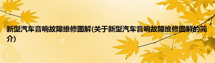 大家好,新型汽车音响故障维修图解,关于新型汽车音响故障维修图解的简介很多人还不知道,现在让我们一起来看看吧!