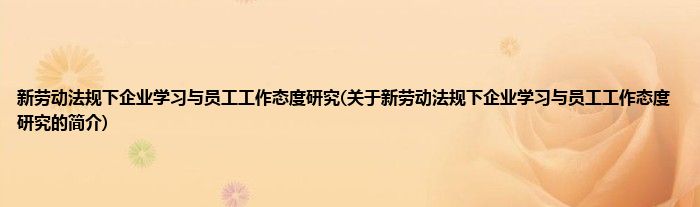 大家好,新劳动法规下企业学习与员工工作态度研究,关于新劳动法规下企业学习与员工工作态度研究的简介很多人还不知道,现在让我们一起来看看吧!