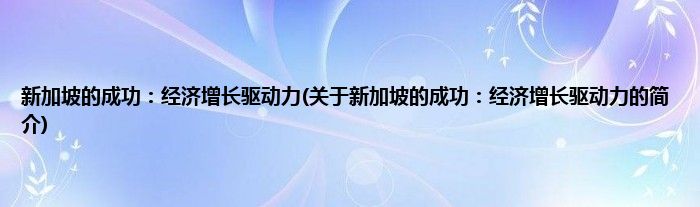 本文关于新加坡的成功:经济增长驱动力的简介就讲解完毕,希望对大家有所帮助。